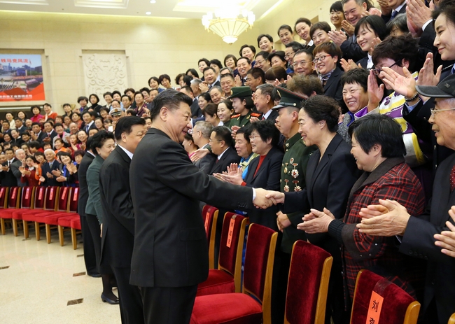 习近平总书记与郭素萍老师亲切握手